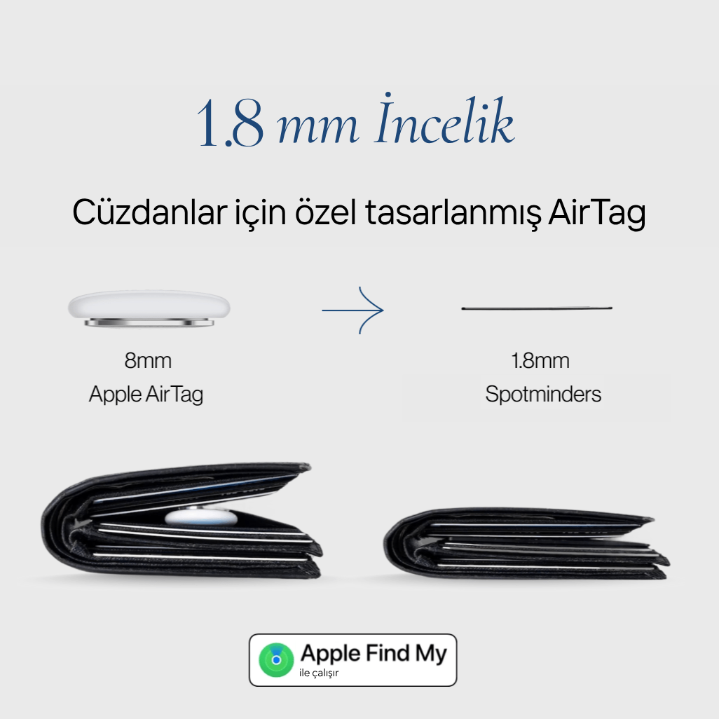 Spotminders Takip Kartı, yalnızca 1,8 mm kalınlığındaki ultra ince tasarımıyla cüzdanınıza kolayca sığar ve size ekstra hacim veya rahatsızlık vermez.